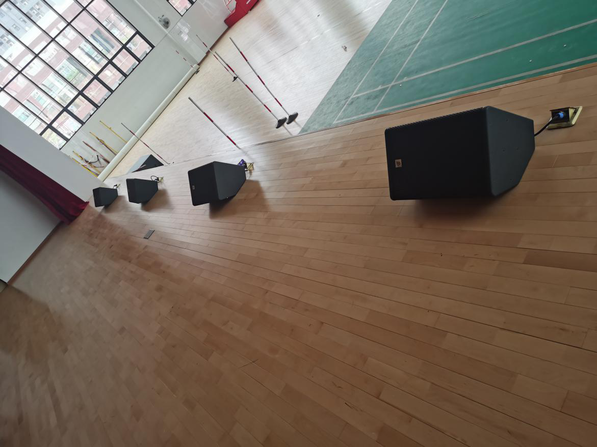 該擴(kuò)聲系統(tǒng)設(shè)計(jì)功能明確,以BAIANGDE TZ系列線陣為主擴(kuò)聲音箱,舞臺(tái)上方左右各4只TZ-210,搭配2只TZ-218S超低頻音箱使用,超低頻音箱擺放在舞臺(tái)前方左右兩側(cè),考慮到體育館深度的問題,為了保證聲音的均勻度,后場采用6只MT-12作為補(bǔ)聲音箱,每邊三只。整個(gè)擴(kuò)聲系統(tǒng)為觀眾帶來一個(gè)音質(zhì)真實(shí)、中高低頻層次豐富,動(dòng)態(tài)飽滿的擴(kuò)聲效果。 由于學(xué)校經(jīng)常有演出,考慮到表演人員能及時(shí)獲取現(xiàn)場演出效果而做出更好的調(diào)整和發(fā)揮,舞臺(tái)上則采用了4只MC-12作為返聽音箱,整體擴(kuò)聲充分考慮各區(qū)音質(zhì)效果,為觀眾建立了一個(gè)音質(zhì)真實(shí)清晰,動(dòng)態(tài)充沛有力的聽覺環(huán)境。